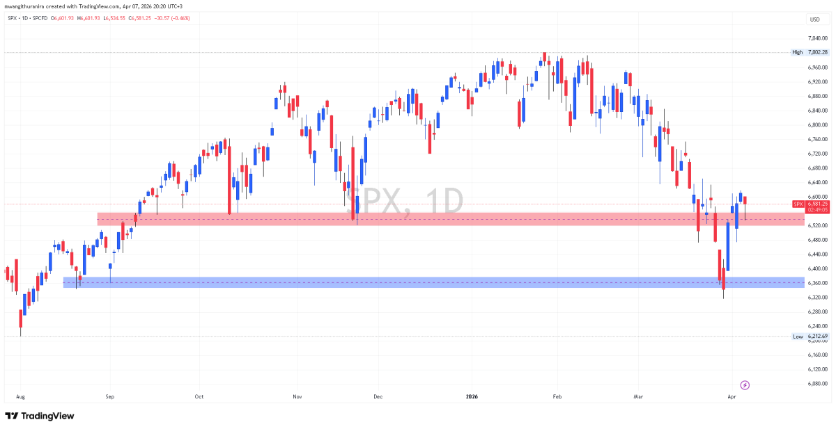 最近の市場活動は、物語に別の層を追加します。 5週連続で下落を見せたS&P 500は、1株当たり3.4%の強い上昇を見せ、連続下落を続け、2026年4月6日に終了した週には約6,611ポイントで締め切りました。
